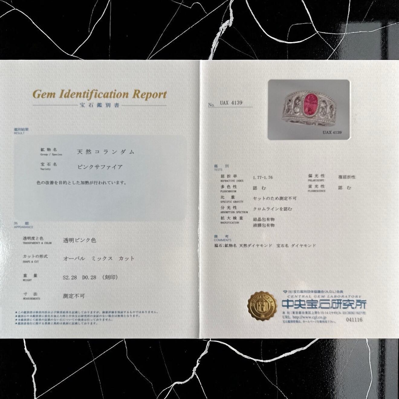 PT900天然ピンクサファイア2.28ct&天然ダイヤモンドハンドメイドリング