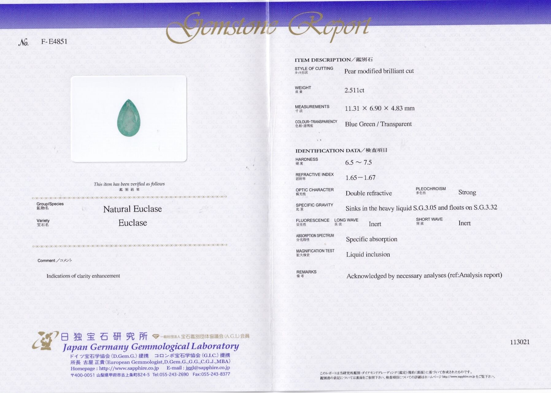コロンビア産Guatéque鉱山ユークレース 2.511ct