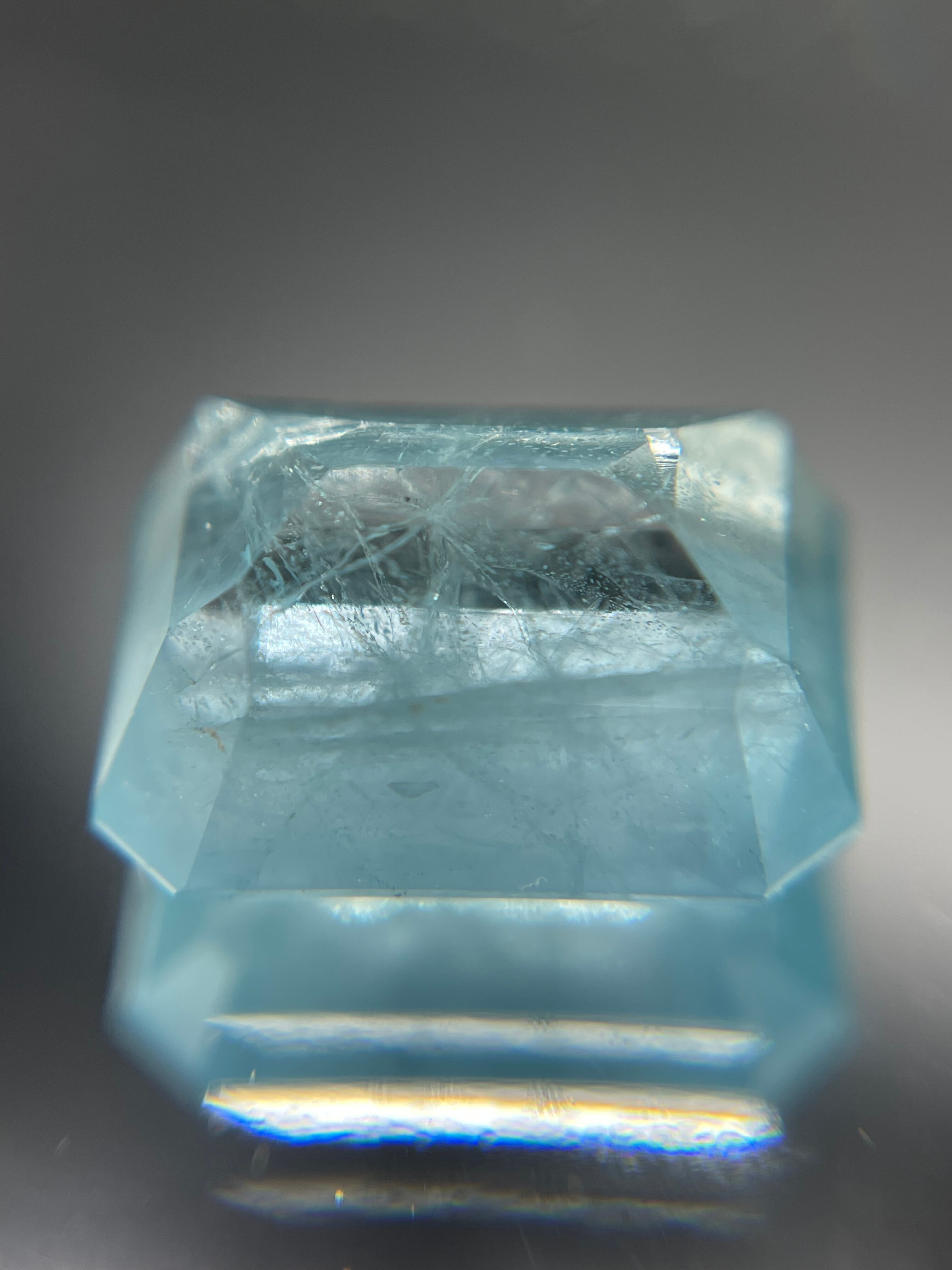 ファセットとカボションカットにする際も問題はありせんでした。カットする際ベリルやトパーズに類似しており、それにより比重(3.1)と近い値を得ており、モース硬度も(7.5)と、緑柱石(7.5から8)と同様であり、トパーズ(8)より少し軟らかい。