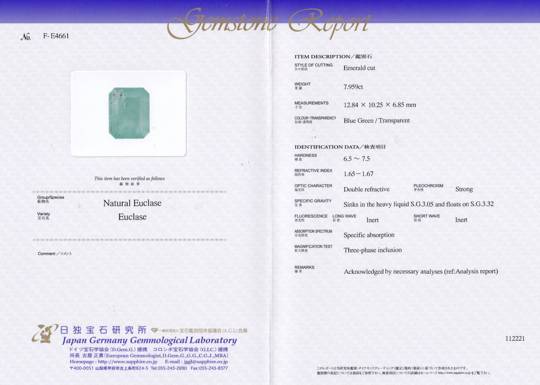 コロンビア産Guatéque鉱山ユークレース 7.959ct