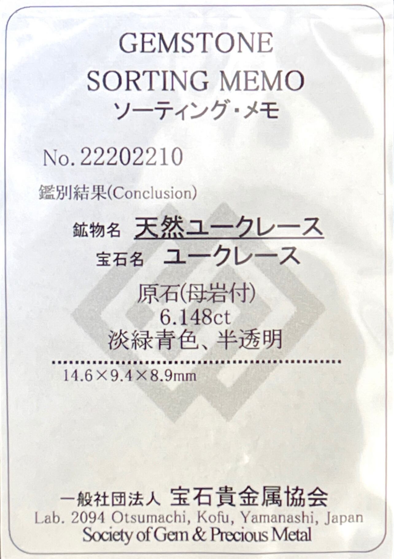コロンビア産Guatéque鉱山ユークレース原石 6.148ct